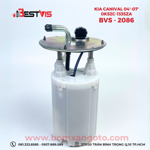 Cụm bơm xăng dành cho dòng xe Kia Carnival đời 2004 đến 2007, mã phụ tùng 0K52C-1335ZA (BVS2086), là sản phẩm chính hãng Bestvis Korea, sản xuất theo tiêu chuẩn OEM, đảm bảo độ chính xác cao và hiệu suất bơm nhiên liệu ổn định. Thiết kế bao gồm mô-tơ bơm mạnh mẽ, lọc xăng tích hợp và cảm biến nhiên liệu, giúp xe khởi động nhanh, vận hành êm và giảm hao xăng rõ rệt.